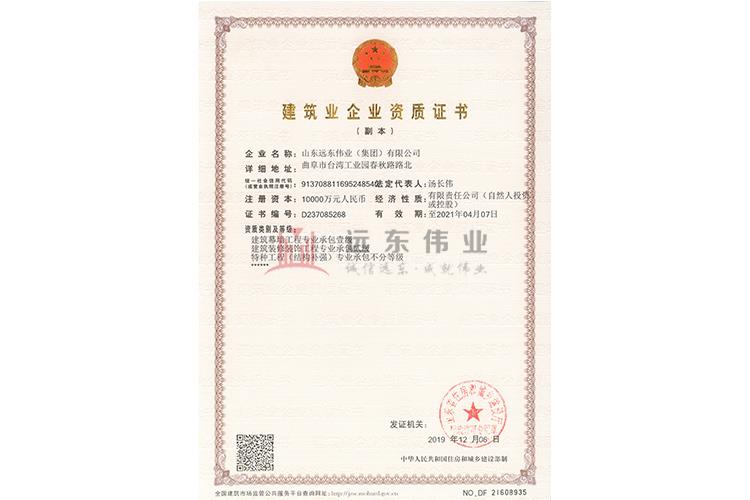 建筑幕墻工程專業(yè)承包壹級 建筑裝修裝飾工程專業(yè)承包貳級 2023-09-13 09:21:23 上一條:塑料窗節(jié)能認證證書 下一條: 企業(yè)集團登記證 相關(guān)資訊 夯實基礎(chǔ)·砥礪奮進 | 重慶龍... 正在施工的和新承接的項目情... 近年完成的類似項目情況表... 關(guān)于加強項目部農(nóng)民工工資支... 熱門推薦 黃海明珠中心 濟寧運河城 開發(fā)區(qū)萬達廣場 中國重汽濟寧商用車有限公司