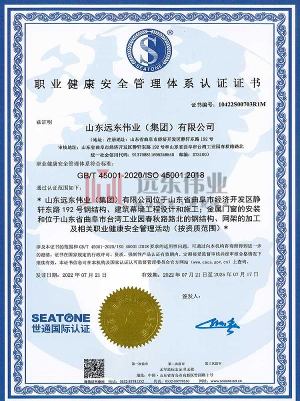 職業(yè)健康安全管理體系認(rèn)證證書 2023-09-13 09:25:44 上一條:重合同守信用企業(yè) 下一條: 環(huán)境管理體系認(rèn)證證書 相關(guān)資訊 夯實(shí)基礎(chǔ)·砥礪奮進(jìn) | 重慶龍... 正在施工的和新承接的項(xiàng)目情... 近年完成的類似項(xiàng)目情況表... 關(guān)于加強(qiáng)項(xiàng)目部農(nóng)民工工資支... 熱門推薦 黃海明珠中心 濟(jì)寧運(yùn)河城 開發(fā)區(qū)萬達(dá)廣場 中國重汽濟(jì)寧商用車有限公司